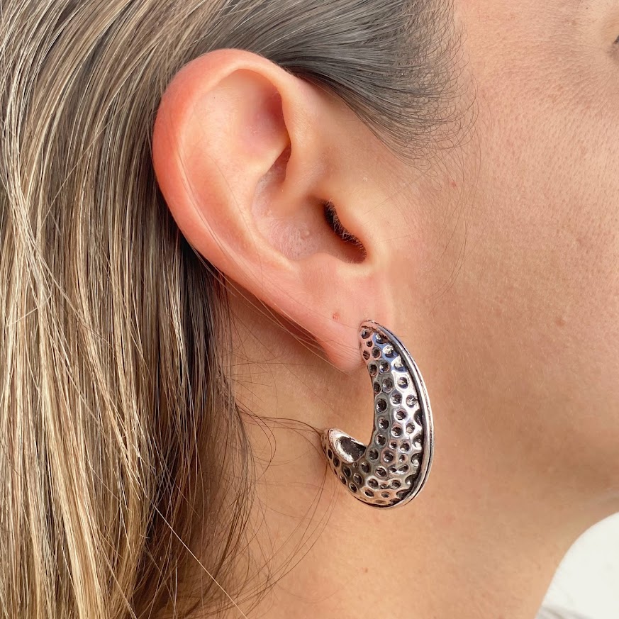 DESCRIÇÃO DO PRODUTO: Argola pino com tarraxa em alumínio banhado na cor prata.
