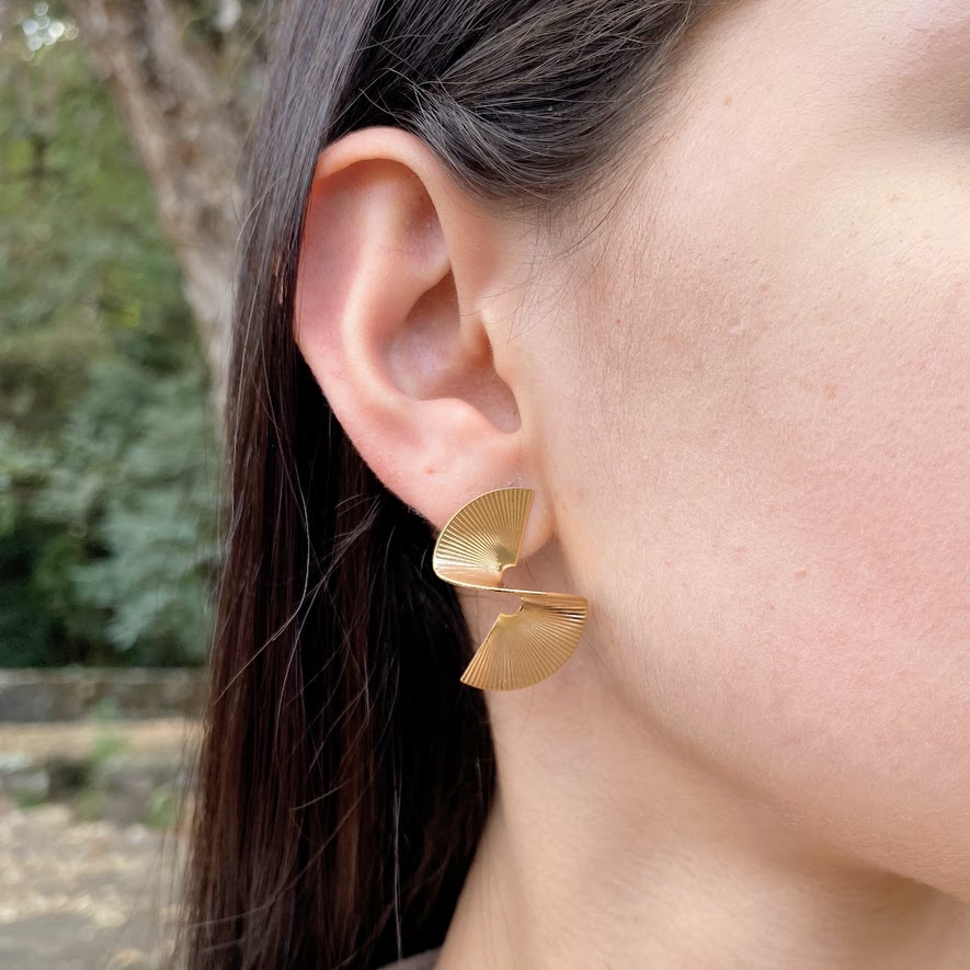 CARACTERÍSTICAS GERAIS: Brinco pino mais tarraxa com curvas em metal banhado