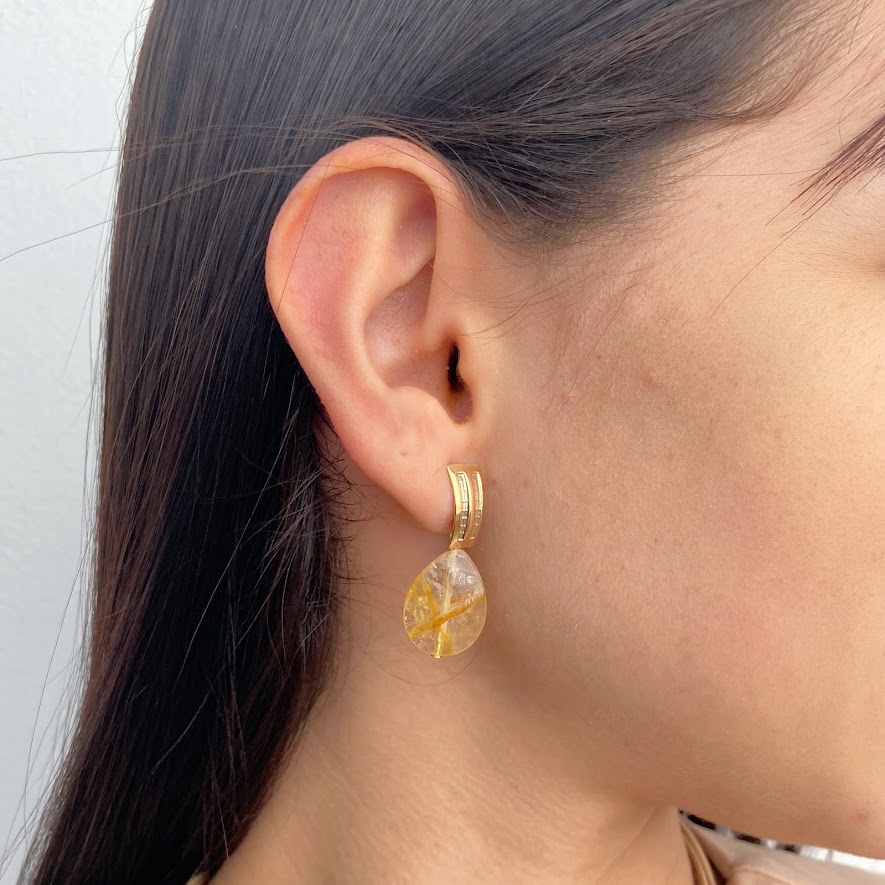 PEÇAS: metais banhados, metais em alumínio leves e resistentes mais pingente gota em pedra natural citrino.
