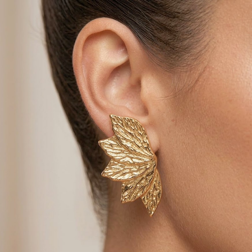 DESCRIÇÃO DO PRODUTO: Brinco pino mais tarraxa com formato assimétrico de pétalas.