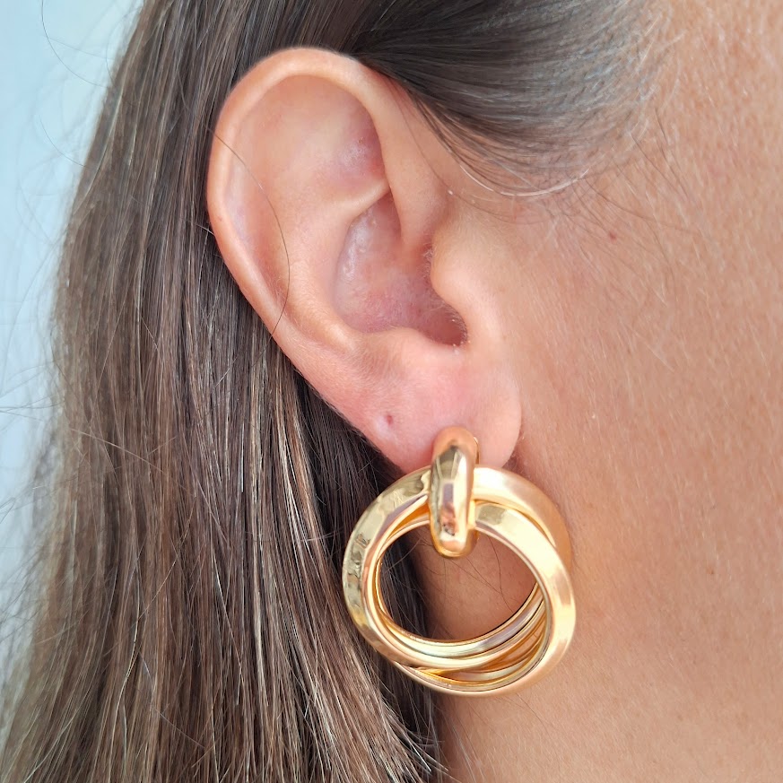 DESCRIÇÃO DO PRODUTO: Brinco pino mais tarraxa com curvas entrelaçadas