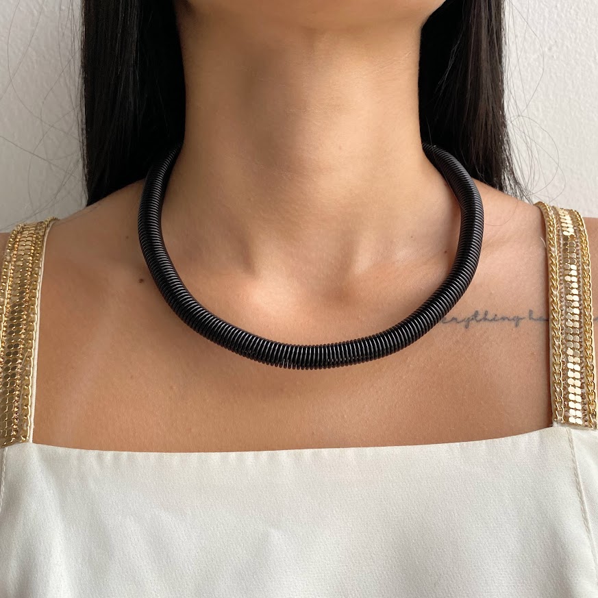 DESCRIÇÃO DO PRODUTO: Arco maleável com fio encerado no interior e exterior com mola em alumínio banhado na cor preta.