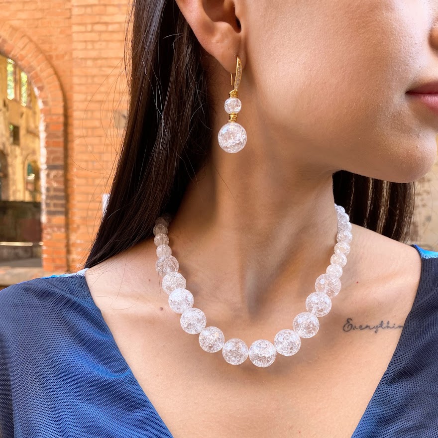 DESCRIÇÃO DO PRODUTO: Colar com correntes em alumínio banhado mais esferas de cristal em vidro bombardeado.