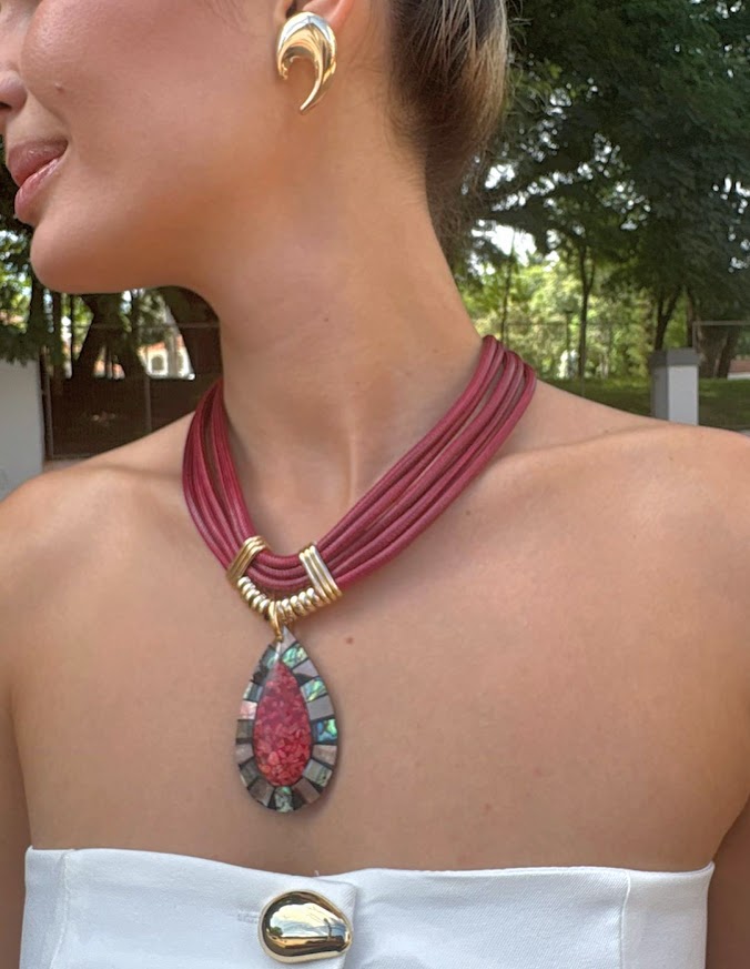 PEÇAS: metais em alumínio leves e resistentes banhados, apresentando alta durabilidade, fio encerado e pingente gota em abalone.