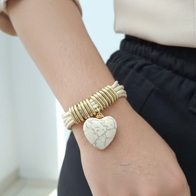 PEÇAS: metais banhados, metais em alumínio leves e resistentes com alta durabilidade, fio encerado mais pingente coração em howlita branca.